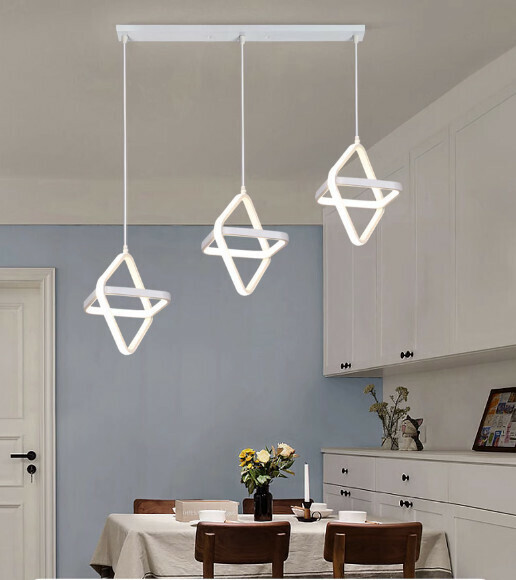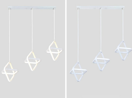 新款長條餐廳吊燈(3頭長盤黑色雙層方形)(三色變光)