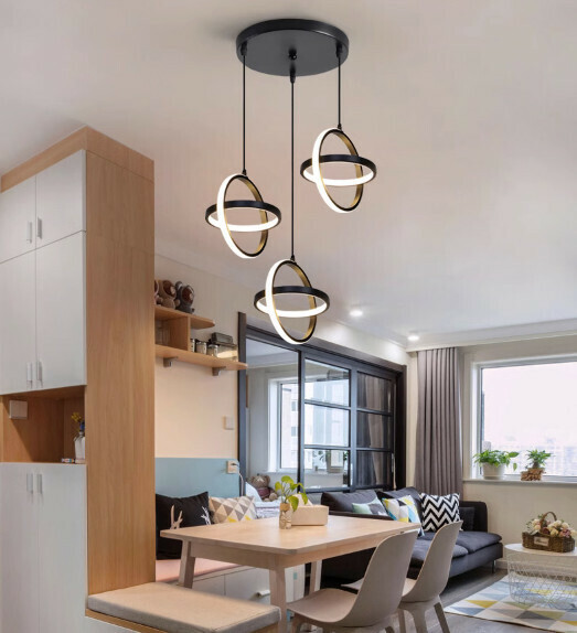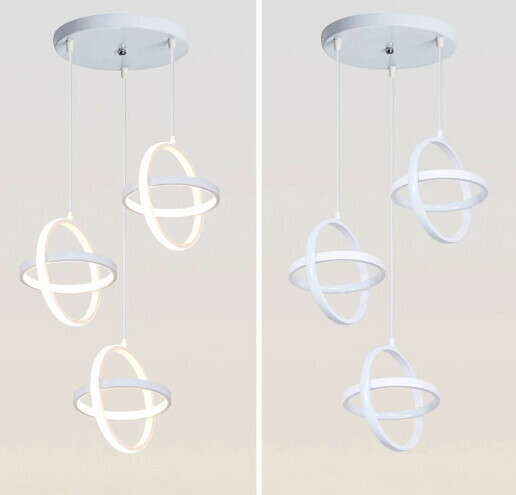 新款長條餐廳吊燈(3頭長盤白色雙層方形)(三色變光)