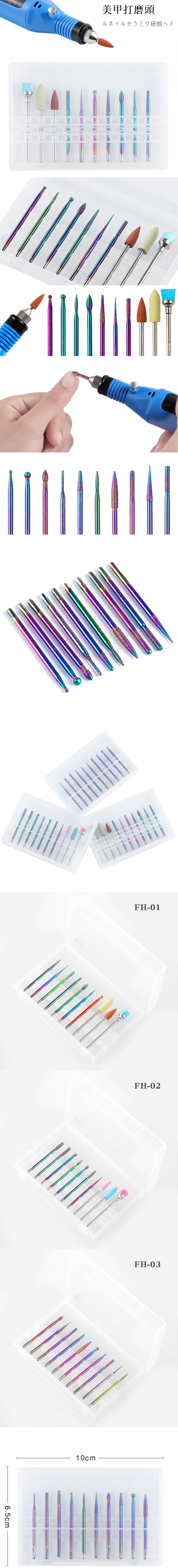 新款美甲鎢鋼合金幻彩打磨頭套裝FH-02