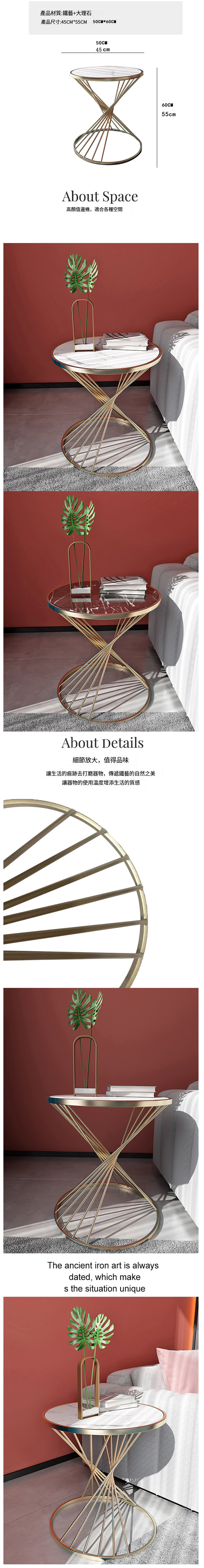 新款大理石茶几圓形角幾床頭柜(金架+黑色大理石,50*50*60cm)