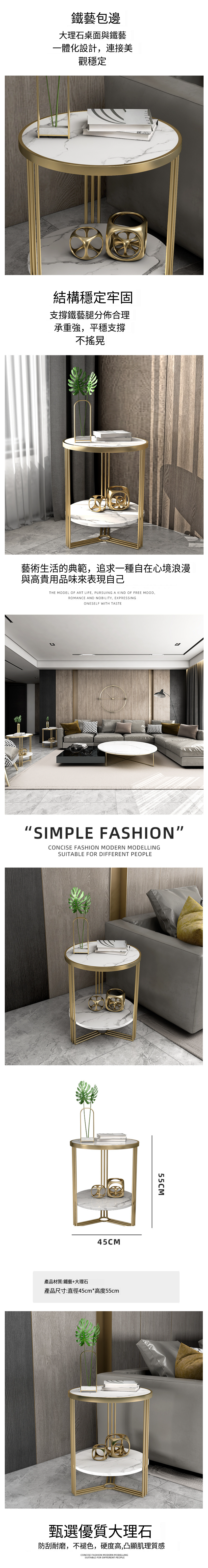 新款大理石岩板雙層圓桌茶几(金架+黑色大理石,50*60cm)