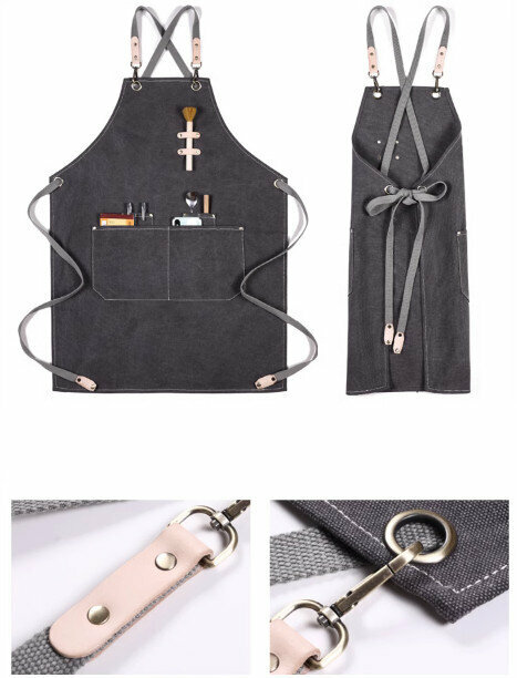 新款奶茶店西餐廳咖啡師圍裙(織帶厚帆布C款-軍綠色)