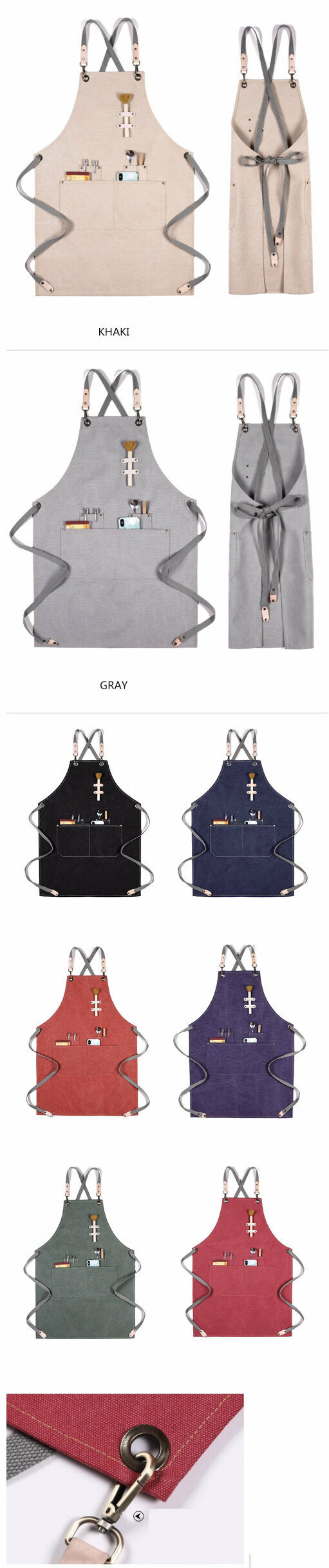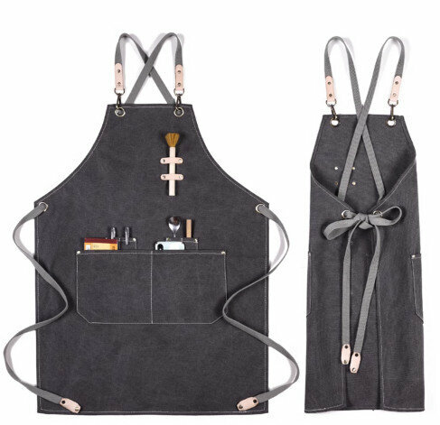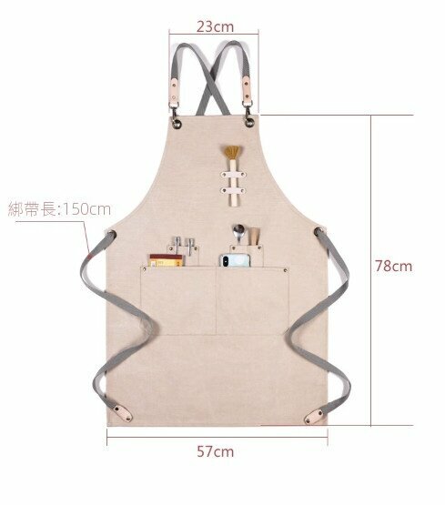 新款奶茶店西餐廳咖啡師圍裙(織帶厚帆布D款-軍綠色)