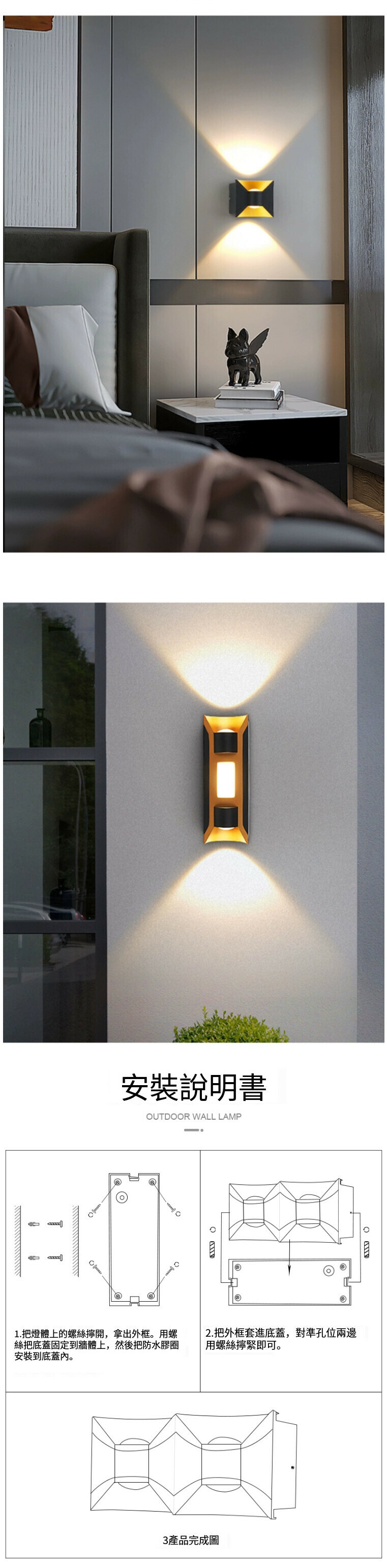 新款極簡壁燈牆燈(B款-白+金-12W暖光)