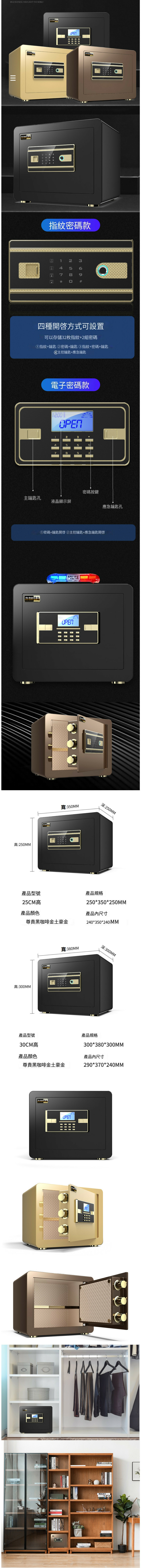 新款家用小型夾萬【25cm咖啡金電子密碼款】
