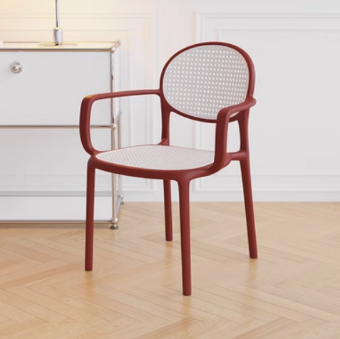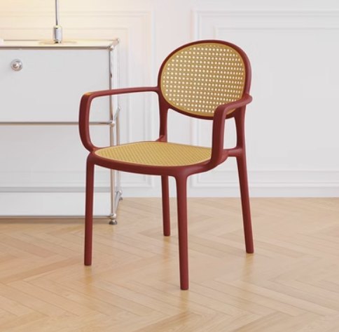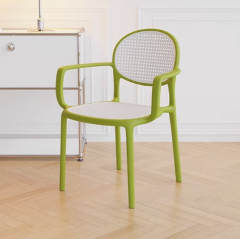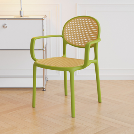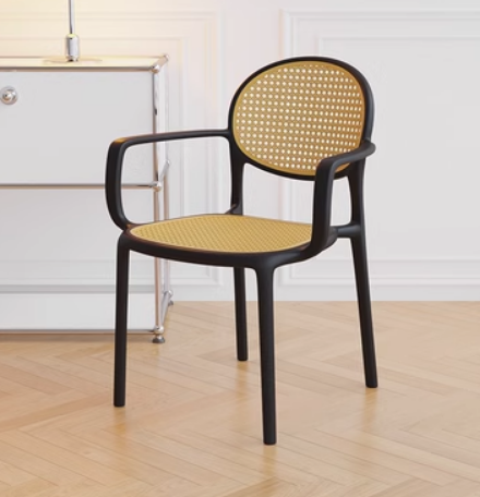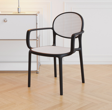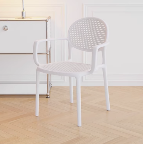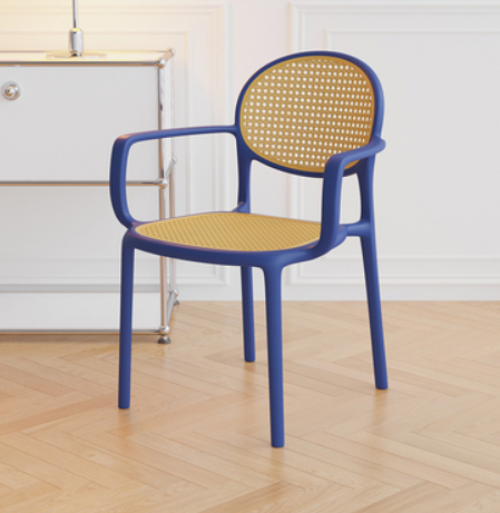 新款現代簡約仿籐編靠背帶扶手塑料椅子(藍框+白色)