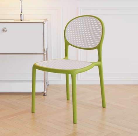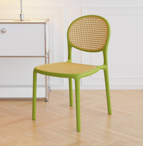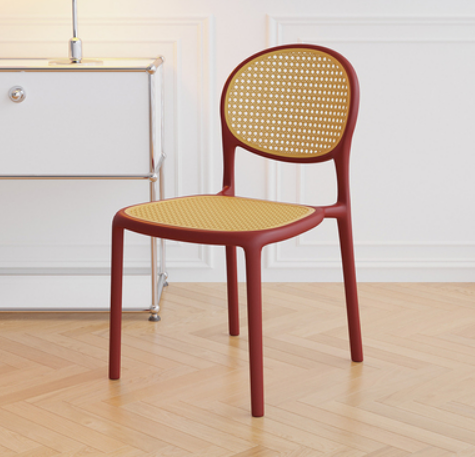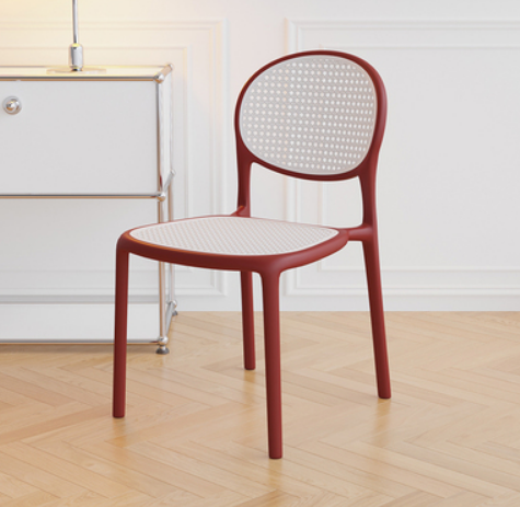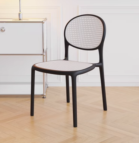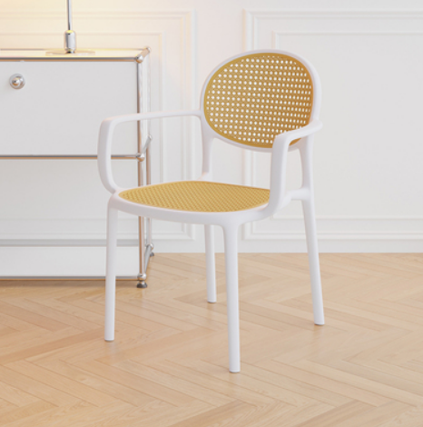 新款現代簡約仿籐編靠背塑料椅子(白框+棕色)