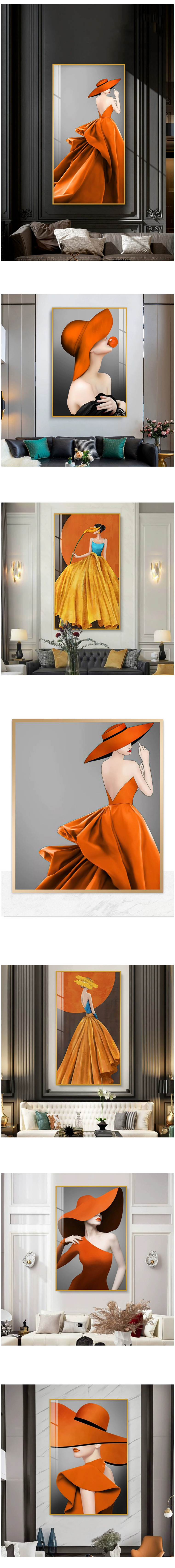 新款現代輕奢壁畫裝飾牆畫(60*80cm 摩登女孩A款 鋁合金拉絲外框【富貴金】)