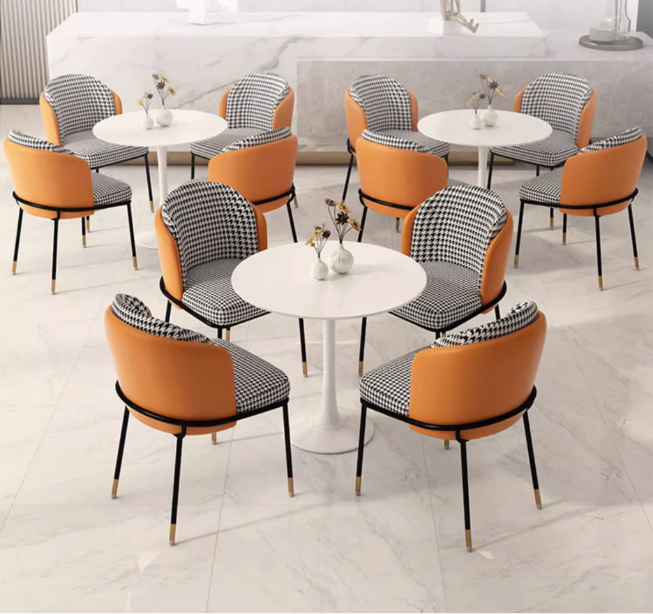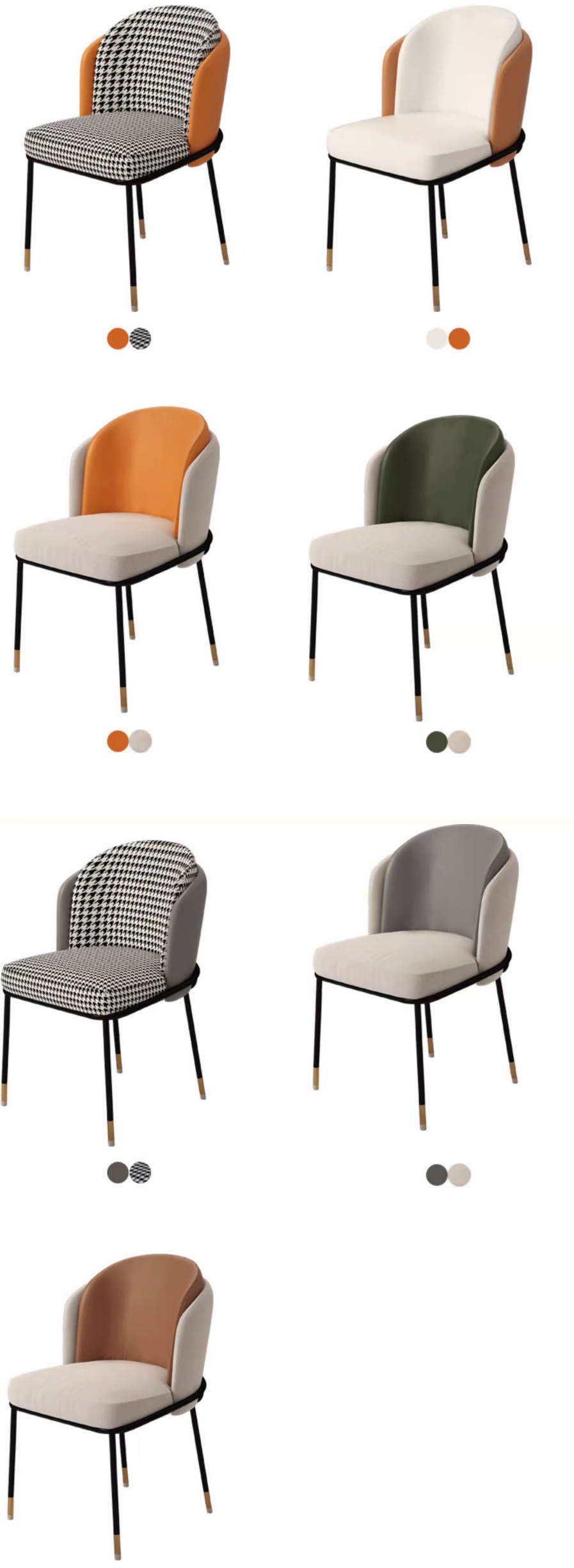 新款現代簡約輕奢靠背餐椅(千鳥格*灰色皮革)(尺寸:54*54*79CM)