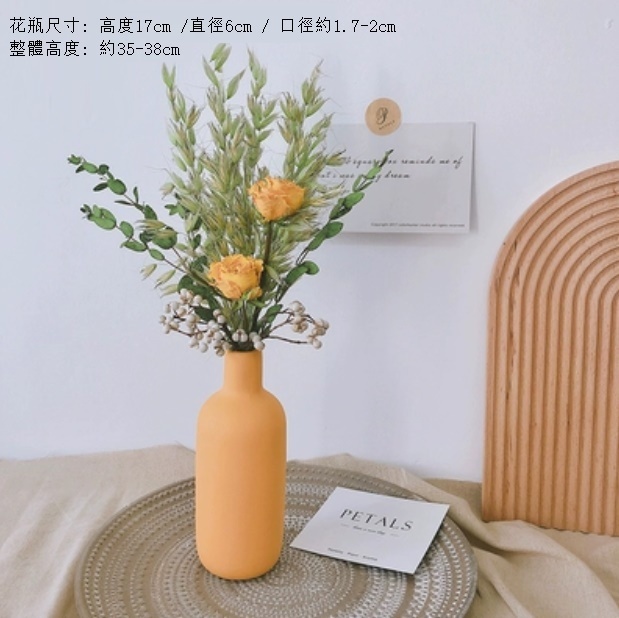 新款莫蘭迪陶瓷小花瓶幹花(莫蘭迪黃瓶 案樹米果葉)