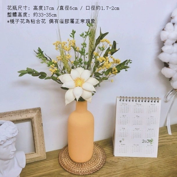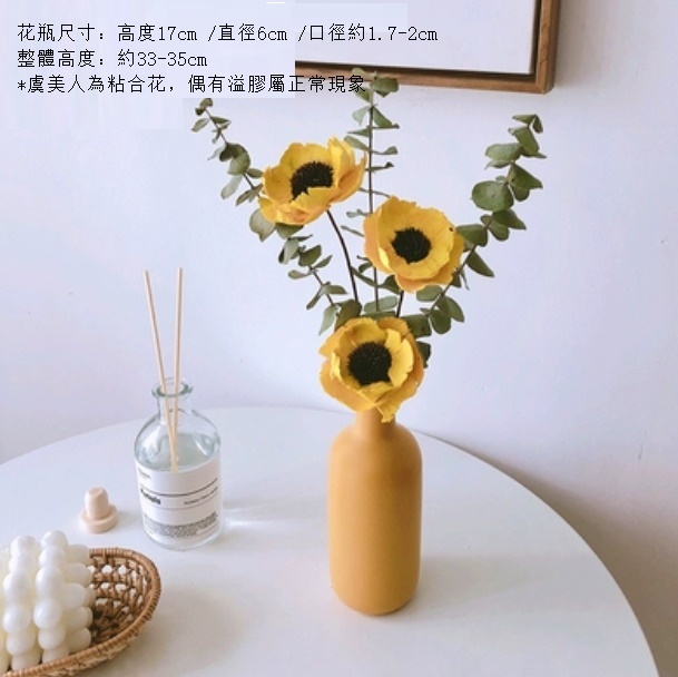 新款莫蘭迪陶瓷小花瓶幹花(莫蘭迪黃瓶 梔子花小葉)