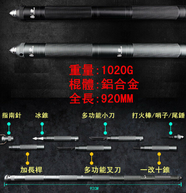 新款多功能防衛戰術棍裝備刀(黑色)ZSG-001(全長920MM