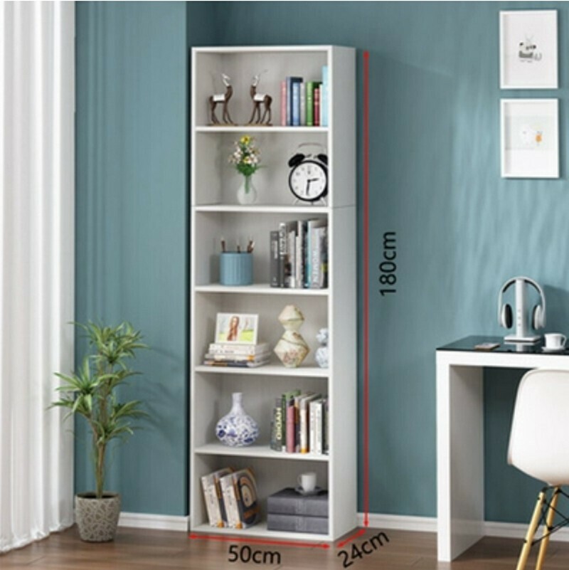 新款多功能落地簡約書架書櫃/置物架/多層收納櫃/組合櫃-實木六層寬50高180cm