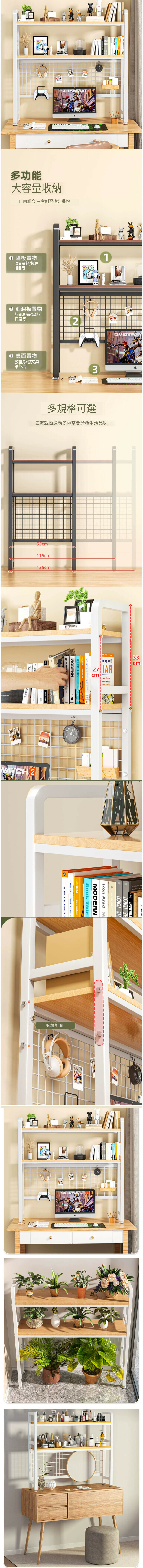 新款多功能置物架 書架 花架【小桌型適用】75cm雙層黑架【鐵藝洞洞板】+掛鉤】