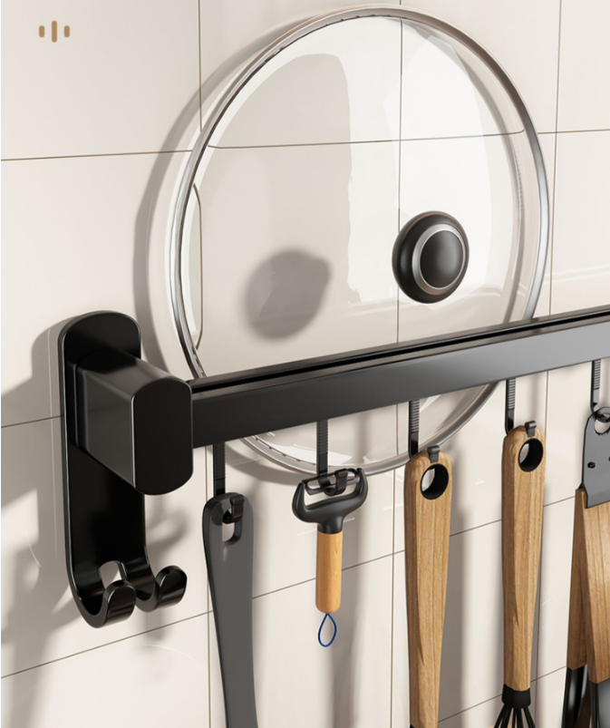 新款廚房用品多功能置物掛架(銀色80cm14鉤可放鍋蓋)(尺寸:80*10*4.5CM)