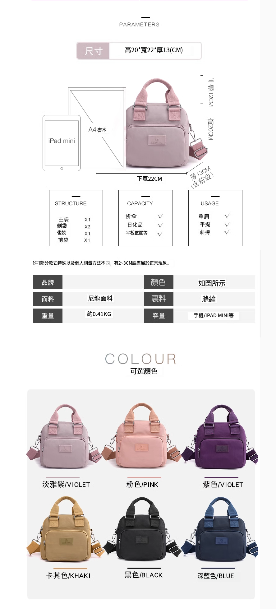 新款多功能帆布簡約洋氣防水牛津尼龍布單肩手提旅行布包女【深藍色】