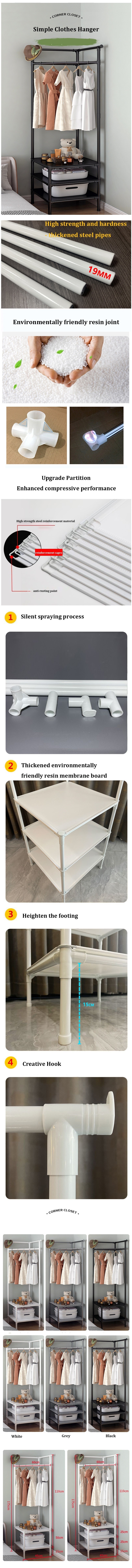 新款多功能衣帽架角落存儲櫃簡易衣櫃 (F07款)