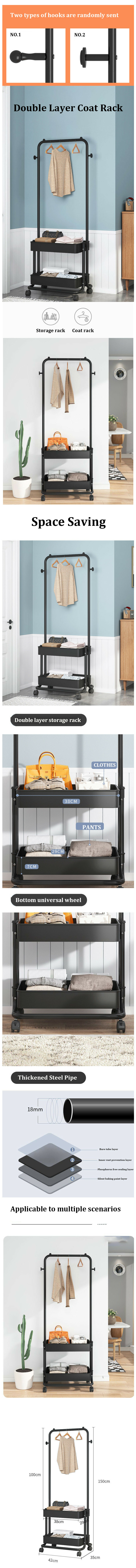 新款多功能衣帽架雙層存儲櫃移動衣櫃(黑色)