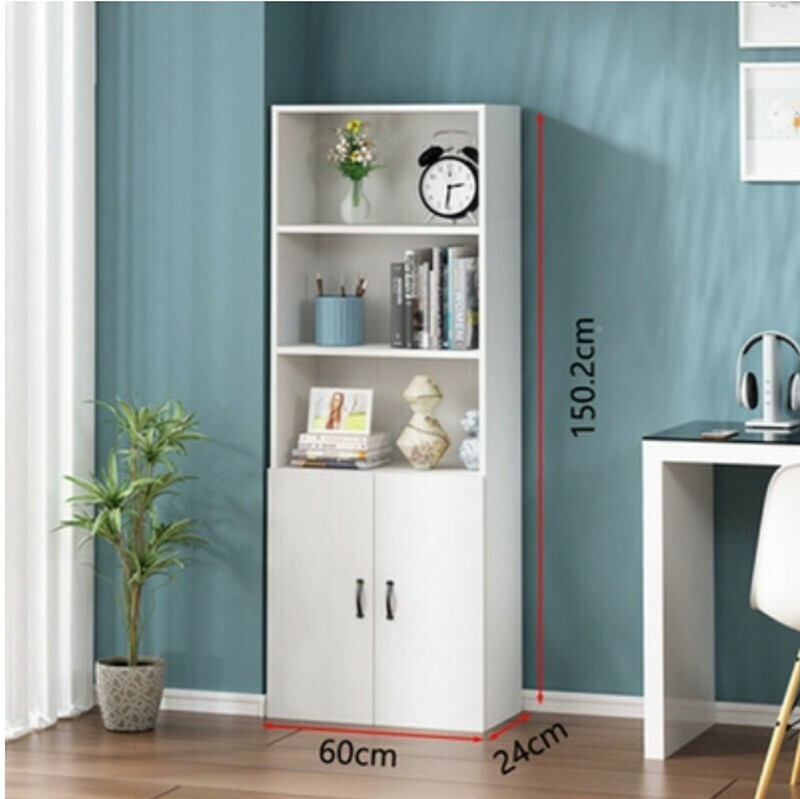 新款多功能落地簡約書架書櫃/置物架/多層收納櫃/組合櫃-實木五層寬60高150cm帶門