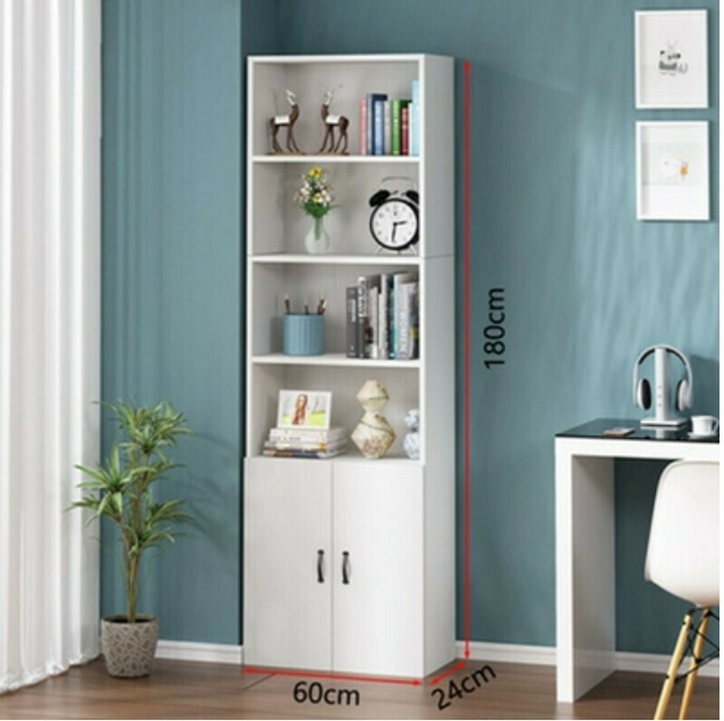 新款多功能落地簡約書架書櫃/置物架/多層收納櫃/組合櫃-實木六層寬60高180cm帶門
