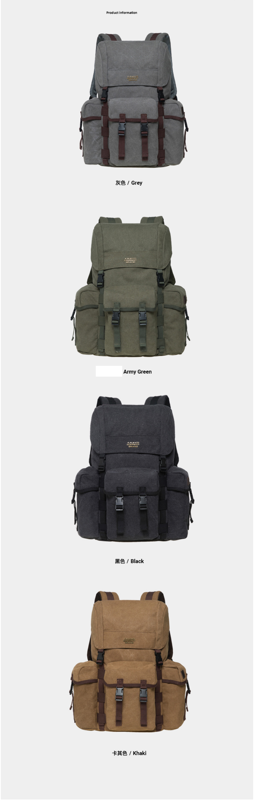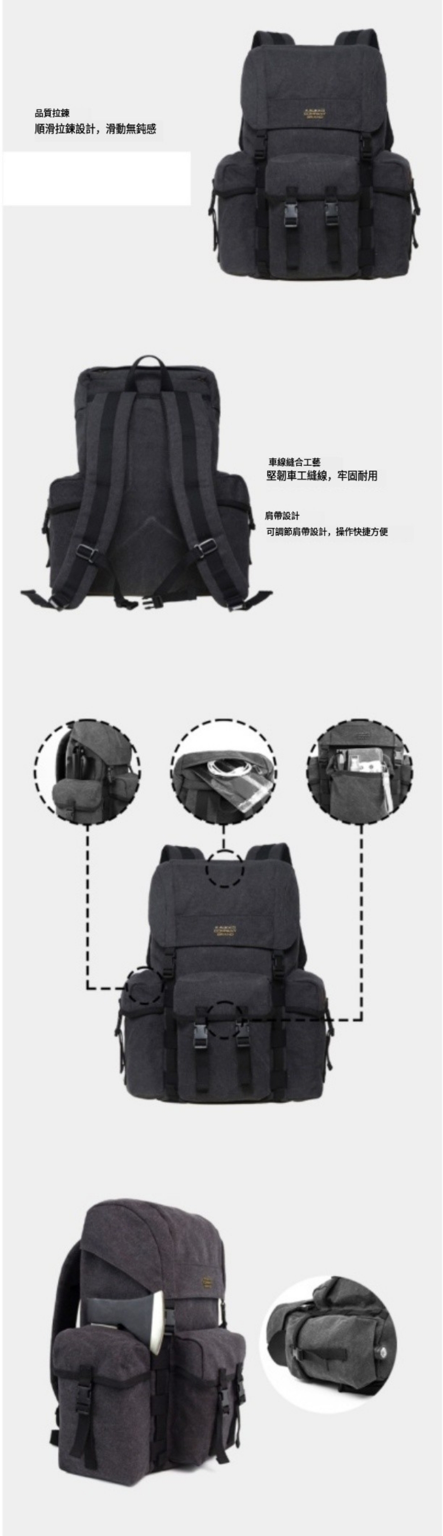 新款男女同款多功能大容量雙肩包 帆布戶外活動背包【灰色】