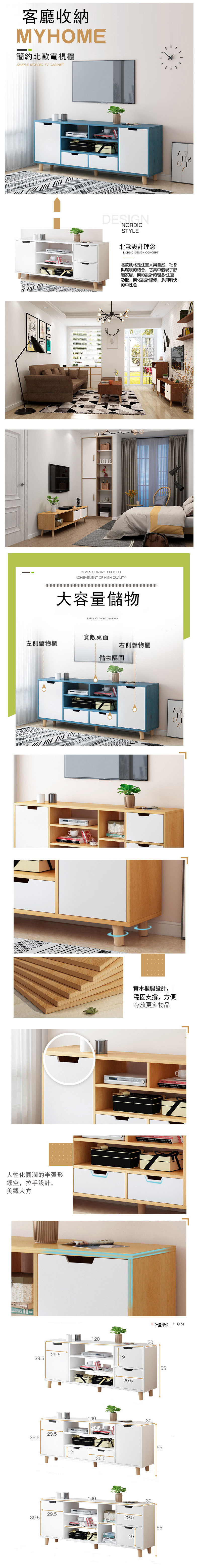 新款多功能儲物電視櫃(北歐楓木+暖白一門兩抽120CM)