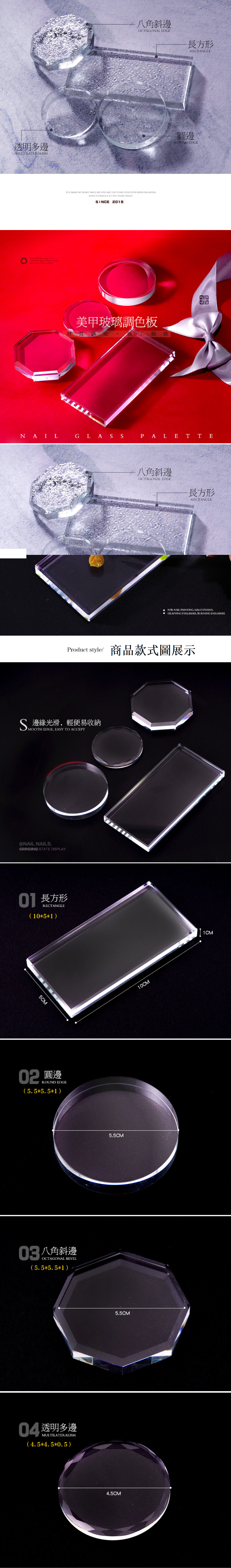 新款美甲調色玻璃板 55mm圓邊形單個