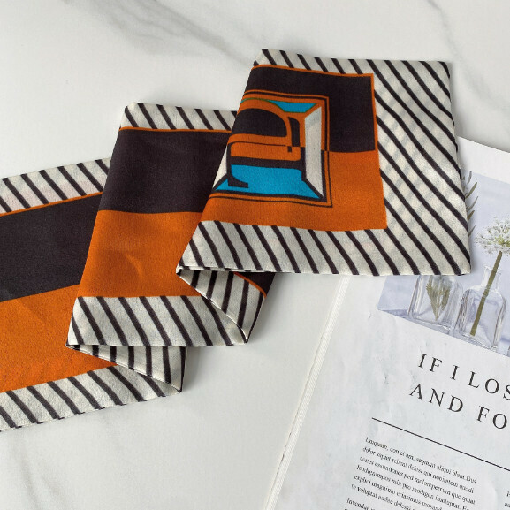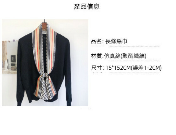 新款細窄雙層長條絲巾(纖細條紋 - 淡棕色)(尺寸:15*152cm)