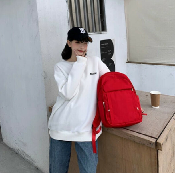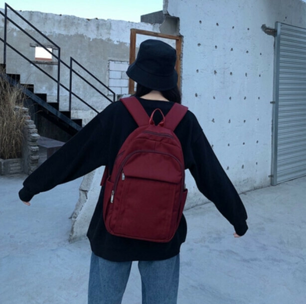 新款小衆韓版高中背包(卡其色(小號)可放14寸電腦)