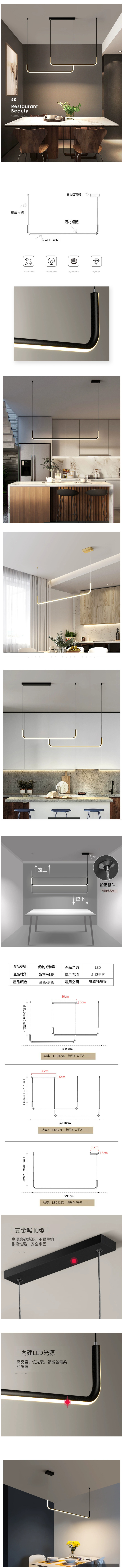 新款北歐極簡長條一字餐廳吊燈(金色1.5米中性光)