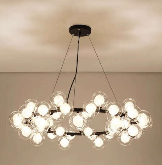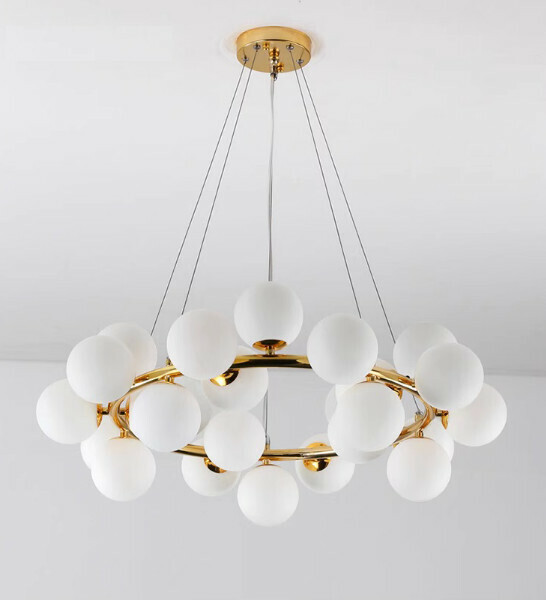 新款北歐簡約吊燈(圓形45頭奶白球/金色-暖光)