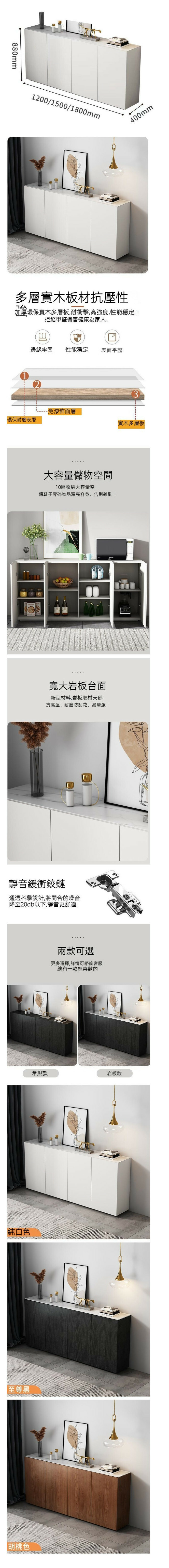 新款北歐簡約實木顆粒板餐邊櫃 儲物櫃(至尊黑/岩板面)(尺寸:180*40*88cm)
