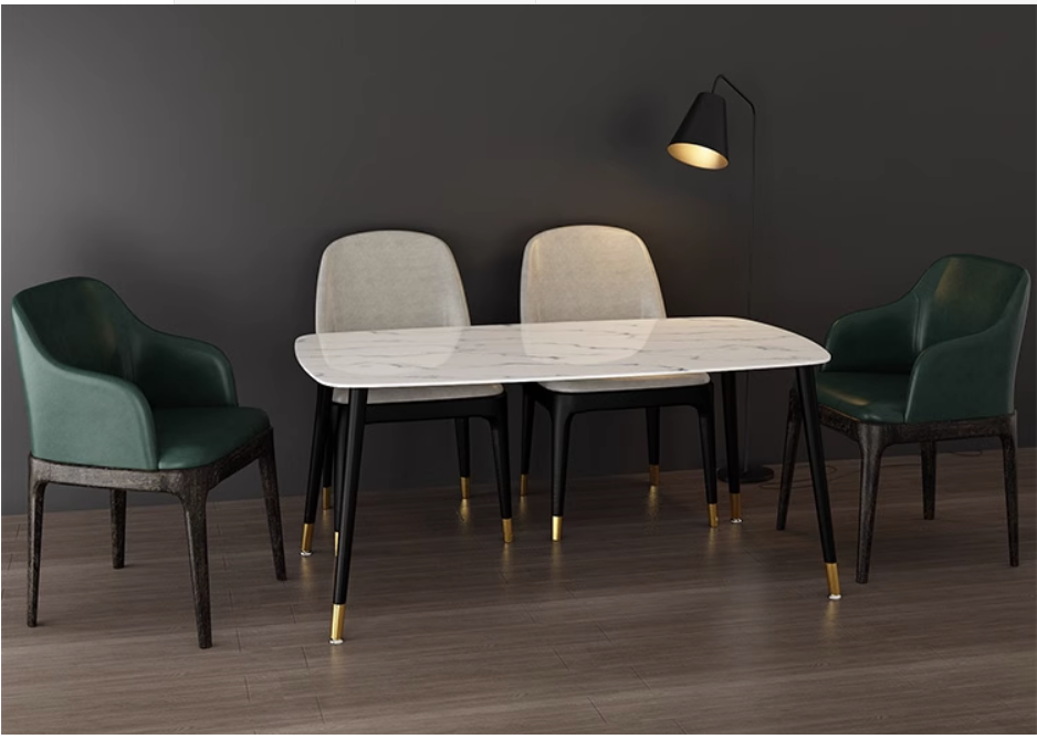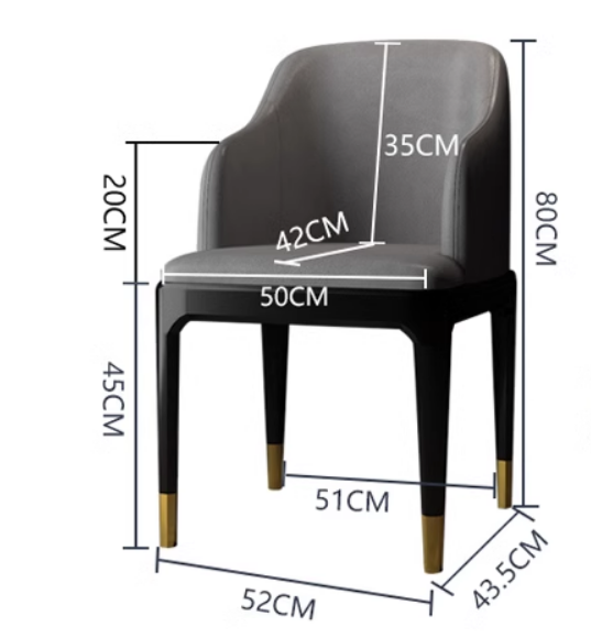 新款北歐風輕奢靠背扶手餐椅(灰色/耐磨防刮皮/鍍金椅腿)(尺寸:長52CM*寬43.5CM*高80CM)