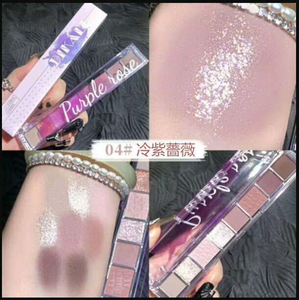 新款新手自然日常妝珠光啞光8色眼影盤-#04冷紫薔薇
