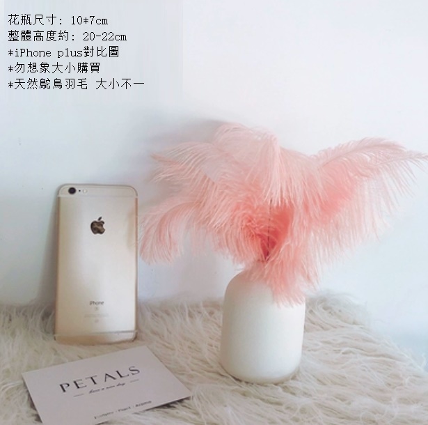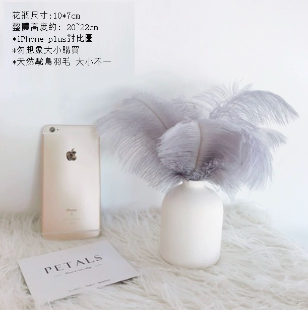 新款鴕鳥羽毛兔尾草幹花花束(白色Q版陶瓷 灰藍鴕鳥羽毛)