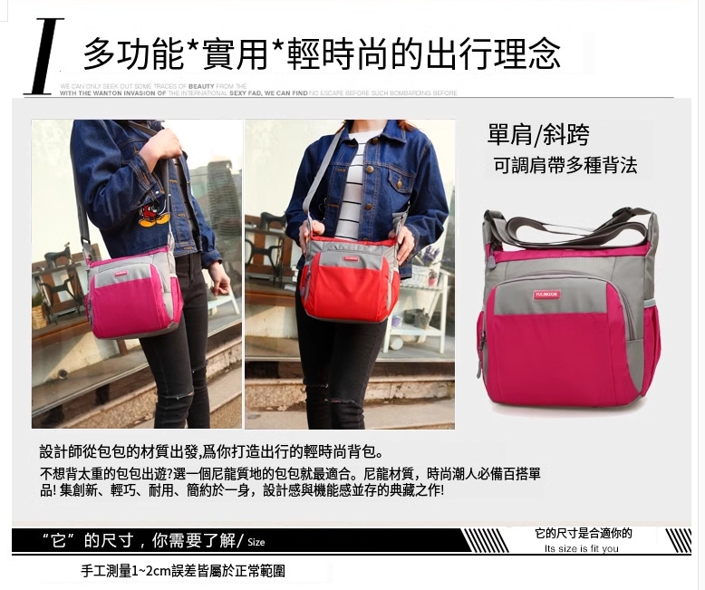 新款戶外休閒運動女包 旅遊斜挎包 防水尼龍布包牛津布單肩斜跨包【黑色】