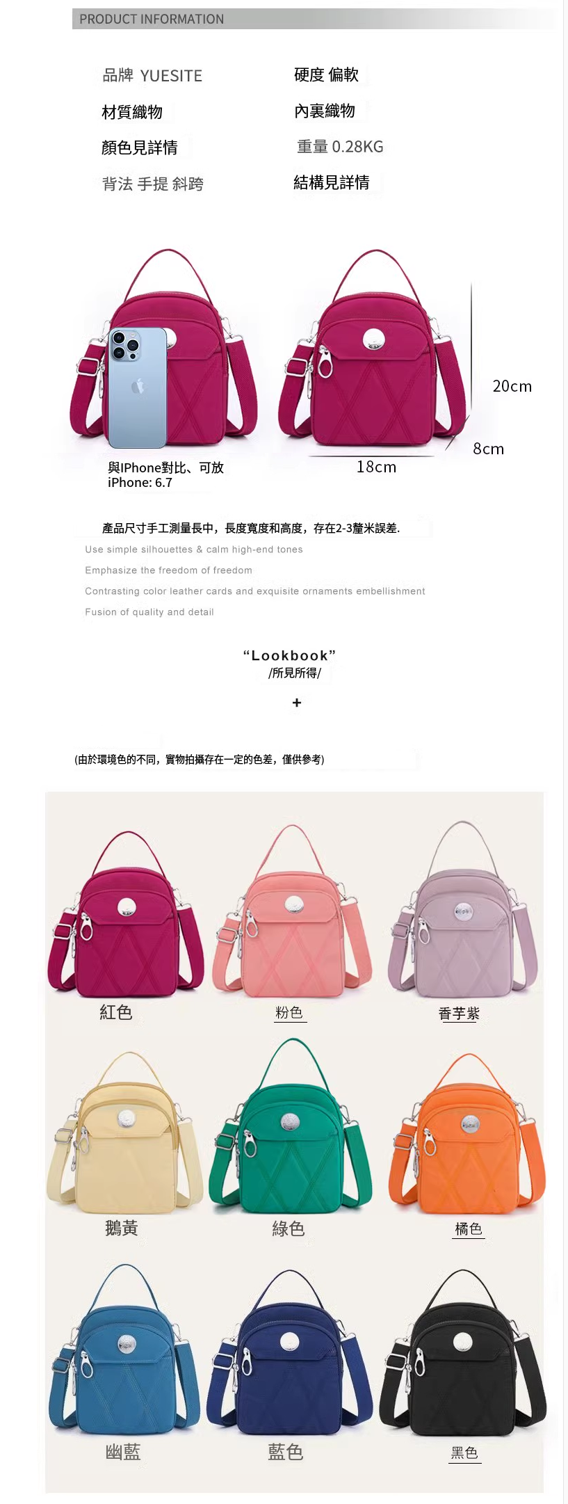 新款牛津布手提女包 斜挎小包 手機包包 多層輕便尼龍單肩包【郵藍色】