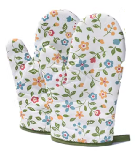 新款一雙純棉防燙隔熱手套(花朵)(尺寸:28*18CM)