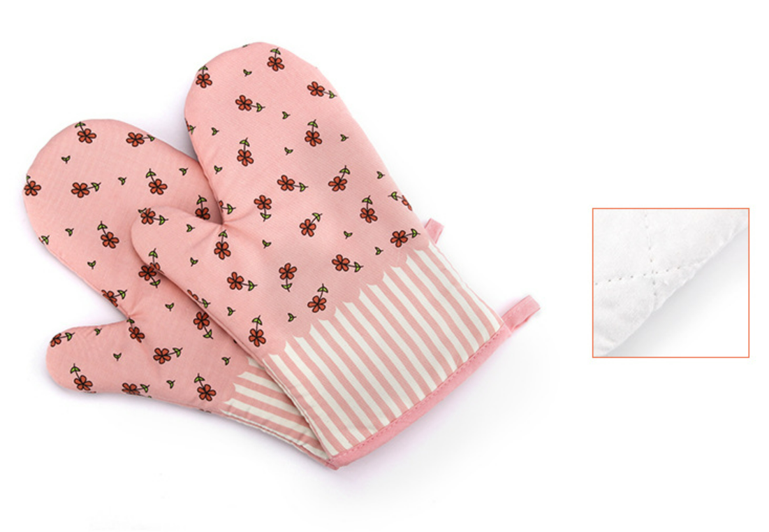 新款一雙矽膠純棉防燙隔熱手套(糖果咖啡)(尺寸:28*18CM)
