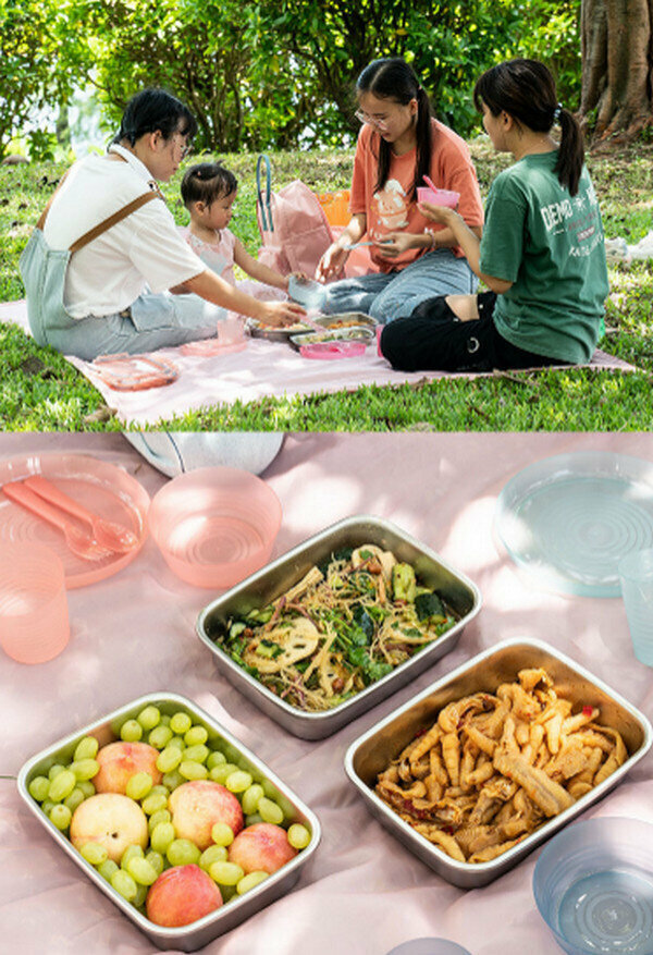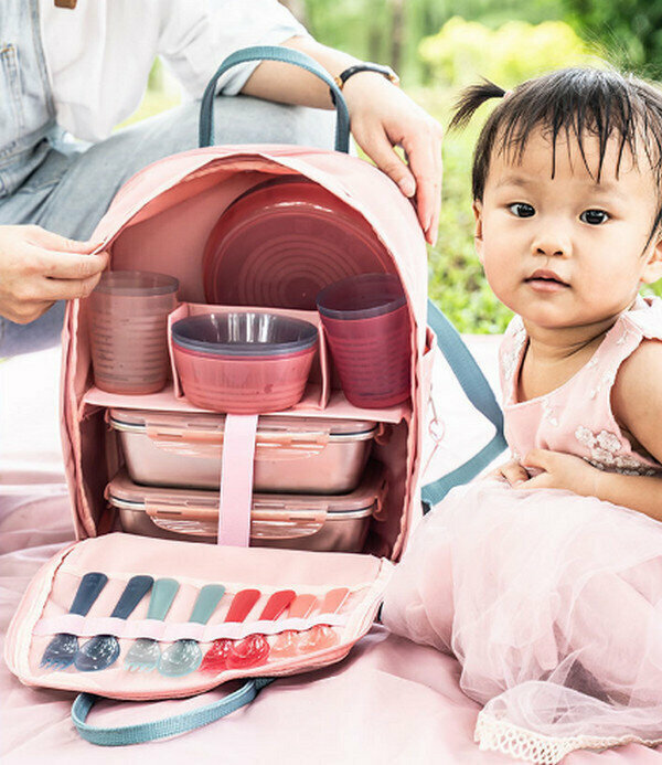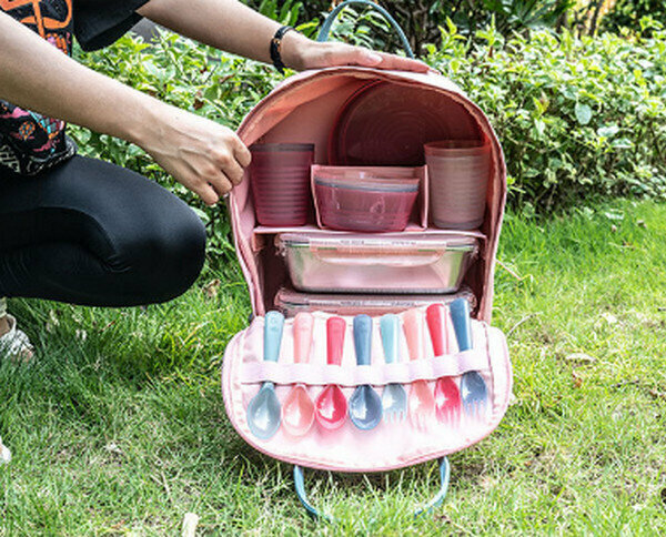新款親子輕食野餐包-粉色-四人餐具套裝LY-A092