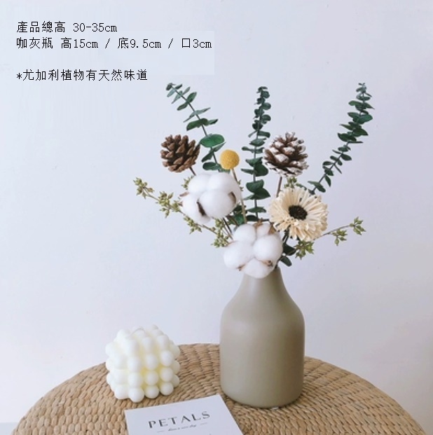 新款松果尤加利輕奢幹花(含咖灰瓶 綿綿松)