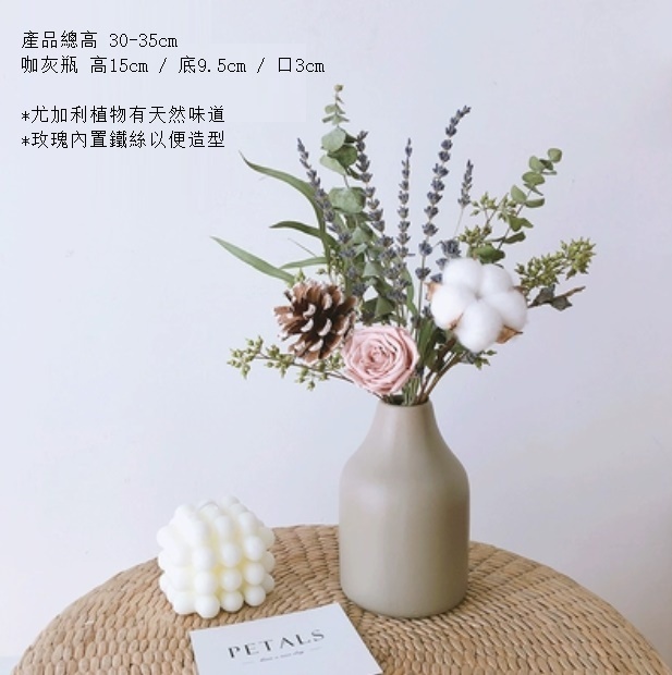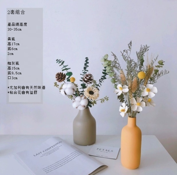 新款松果尤加利輕奢幹花(【兩件套】熏衣松+蘭花米果葉【灰+黃瓶】)