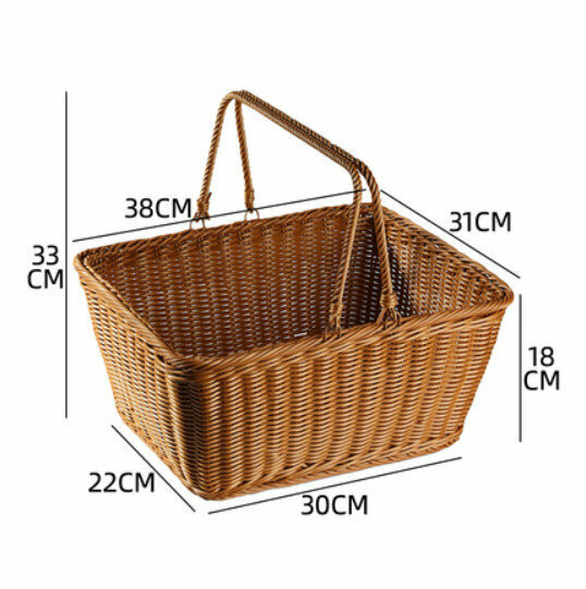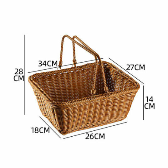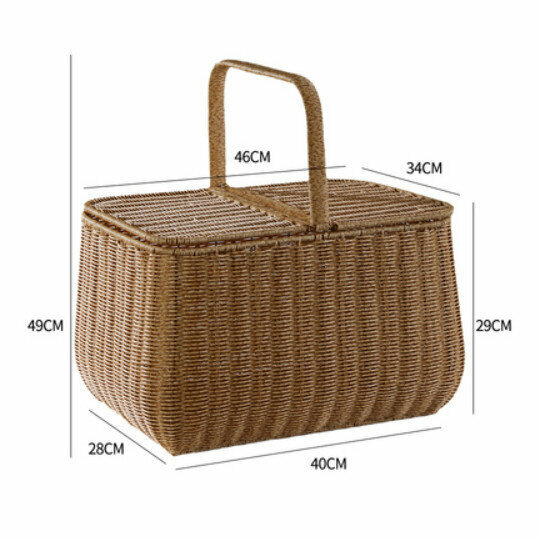 新款塑料籐編收納筐帶蓋野餐籃(淺色/加蓋)尺寸:46*34*29/49CM)