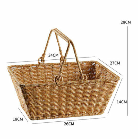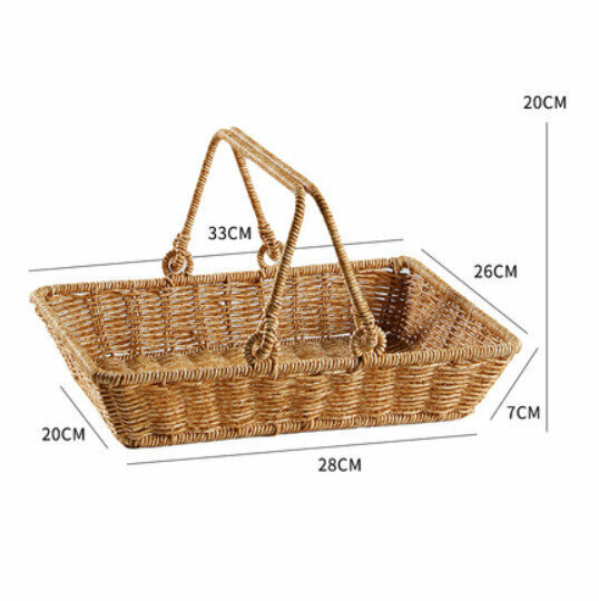 新款塑料籐編收納筐帶蓋野餐籃(橢圓大號/無蓋)尺寸:37*30*19CM)