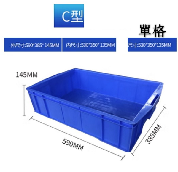 新款塑料周轉箱/膠箱-藍色加厚C1【59x38.5x14.5】無蓋子