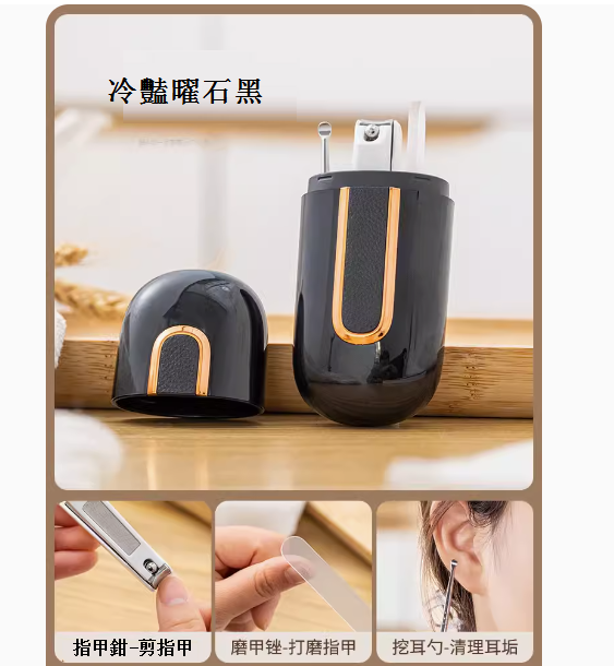 新款便攜指甲刀套裝(曜石の黑【剪甲/亮甲/掏耳3件套】)