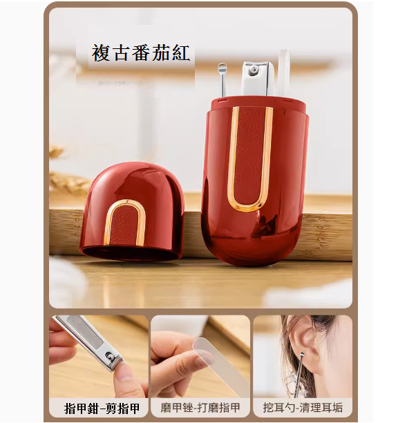 新款便攜指甲刀套裝(番茄の紅【剪甲/亮甲/掏耳3件套】)