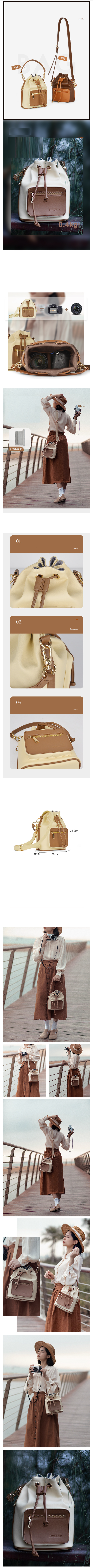 新款手提单眼斜挎攝影包(米黃色束口相機包(1機1鏡+可拆隔板+優選面料))