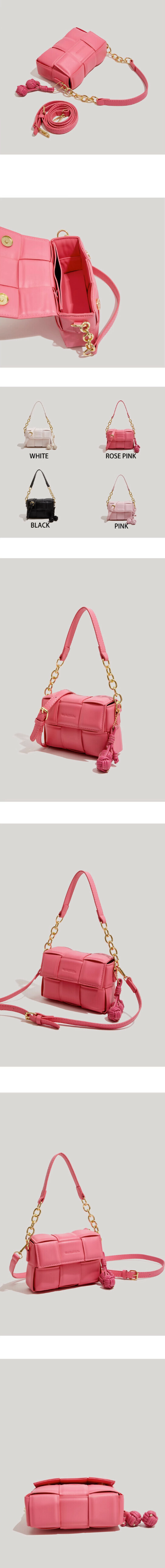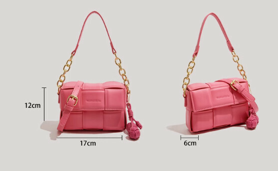 新款pu皮糖果色編織單肩斜挎包(粉色)