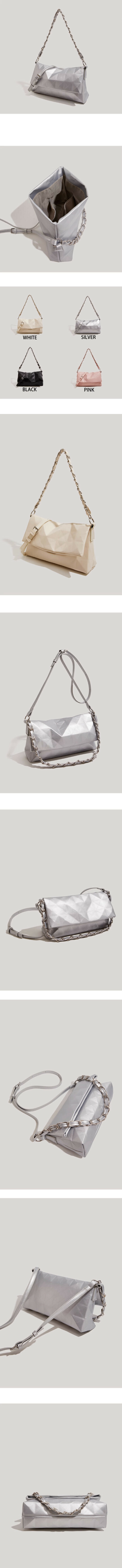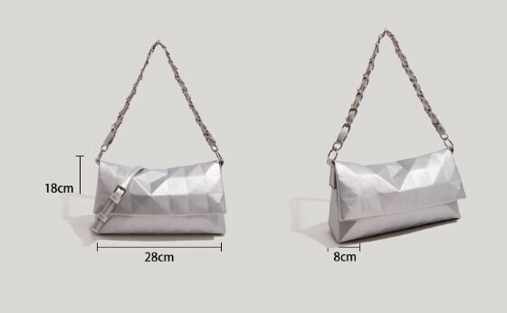 新款pu皮幾何鏈條手提單肩斜挎包(銀色)